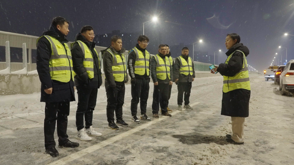 宿遷交建人無(wú)暇欣賞美麗的雪景