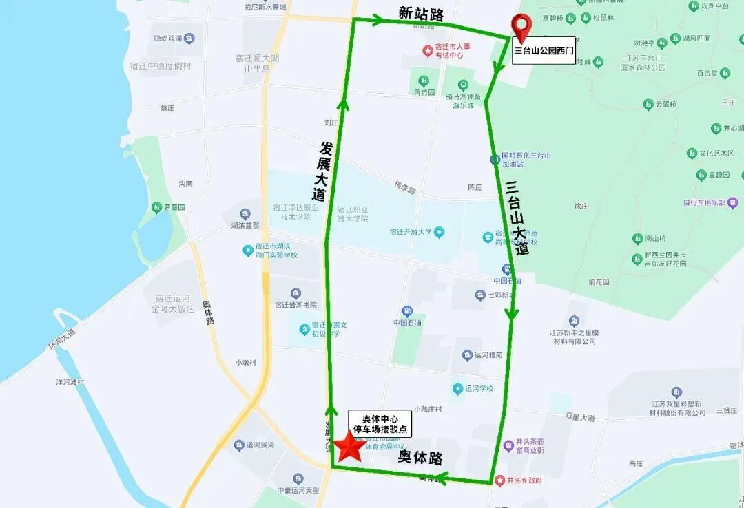 行駛線路:發(fā)展大道—奧體路—三臺(tái)山大道—新站路—發(fā)展大道。