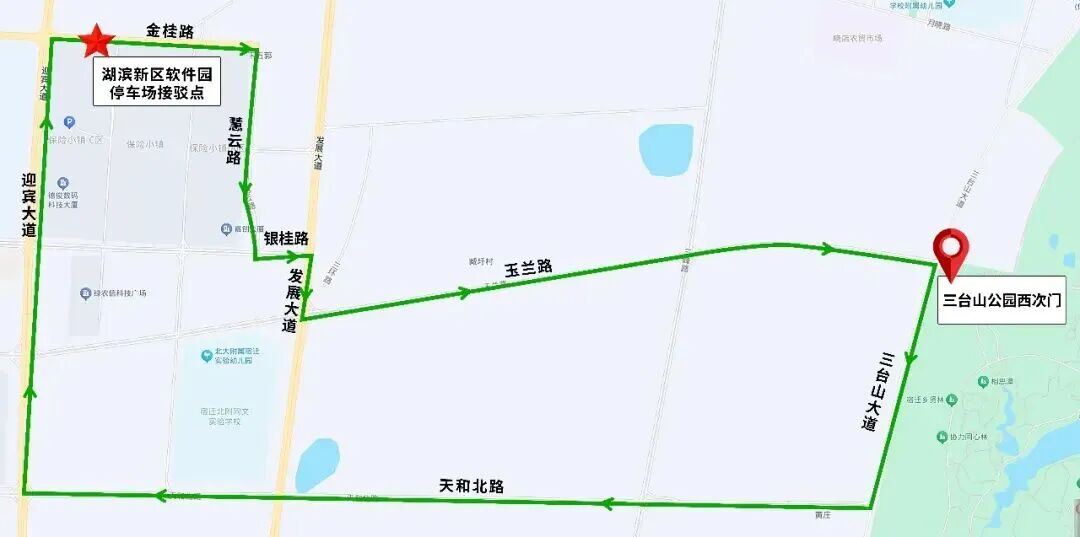 行駛線路:金桂路—慧云路—銀桂路—發(fā)展大道—玉蘭路—三臺(tái)山大道—天和北路—迎賓大道—金桂路。