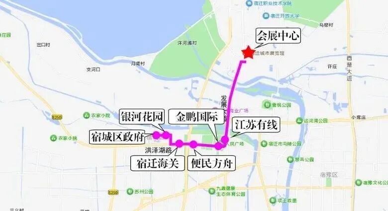 沿線接駁點(diǎn):澤達(dá)學(xué)院公交站點(diǎn)、職業(yè)技術(shù)學(xué)院公交站點(diǎn)、宿遷衛(wèi)校公交站點(diǎn)、開(kāi)放大學(xué)公交站點(diǎn)、國(guó)防園公交站點(diǎn)。