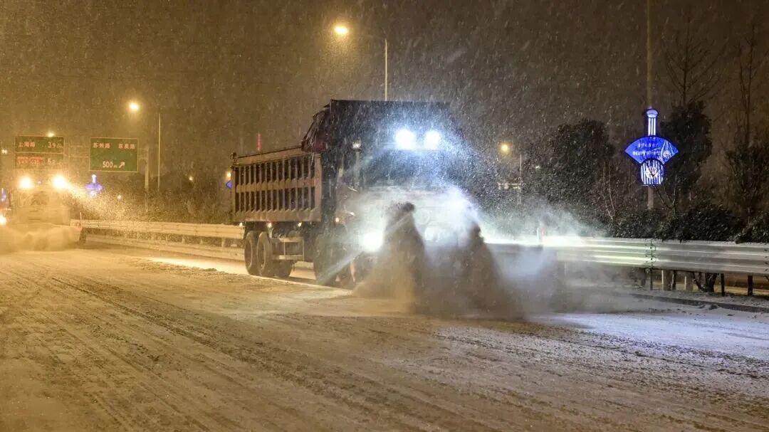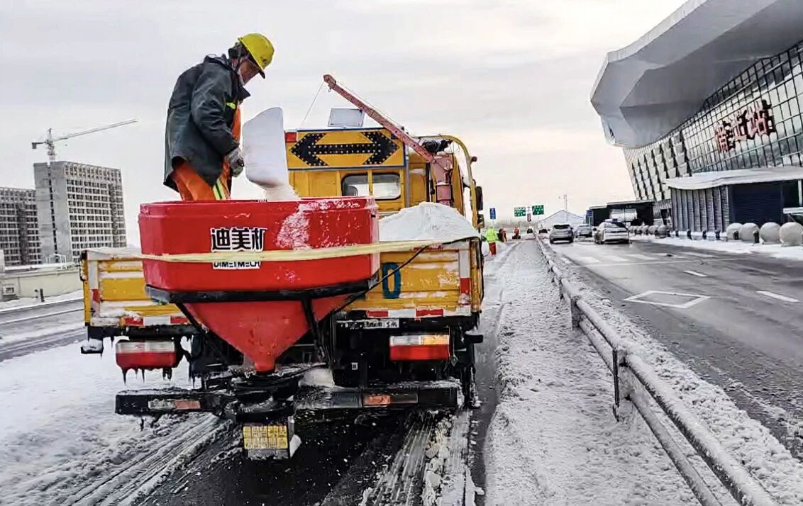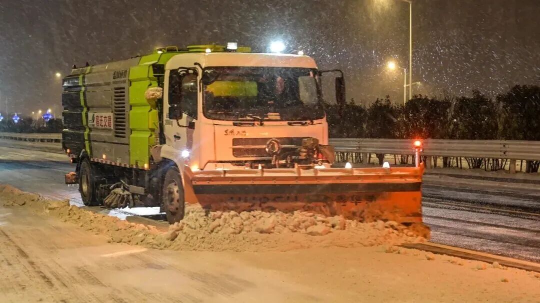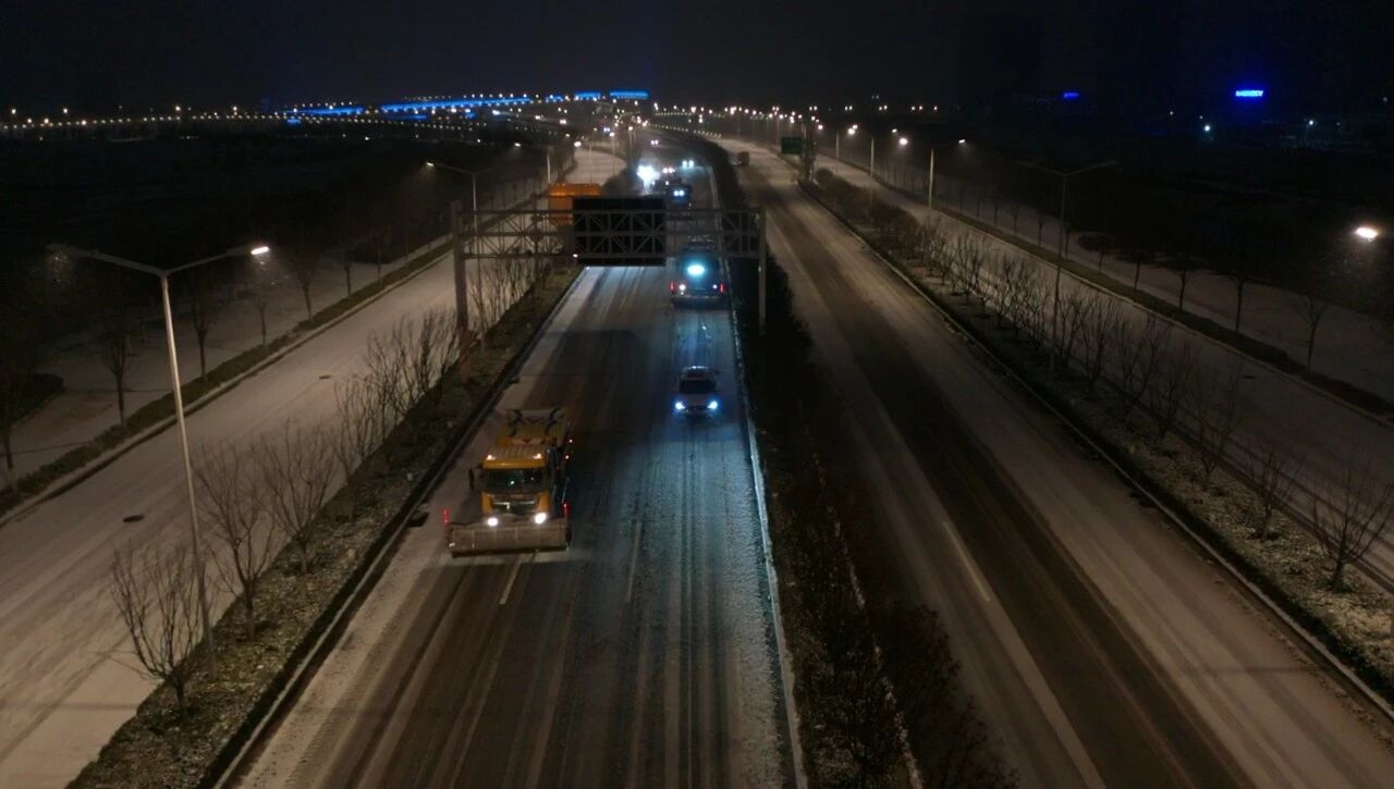 要寫無(wú)人的街,撒布融雪劑的車輛與身影