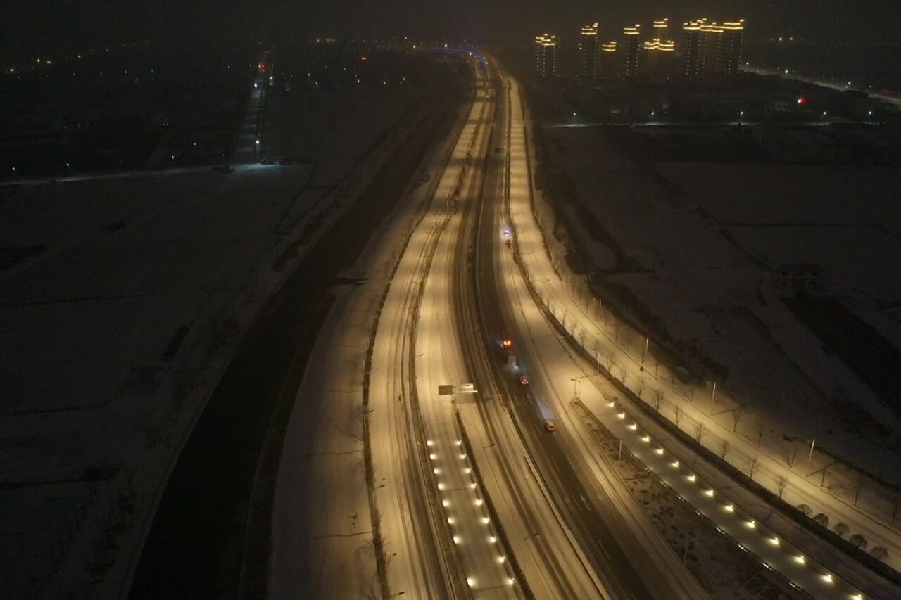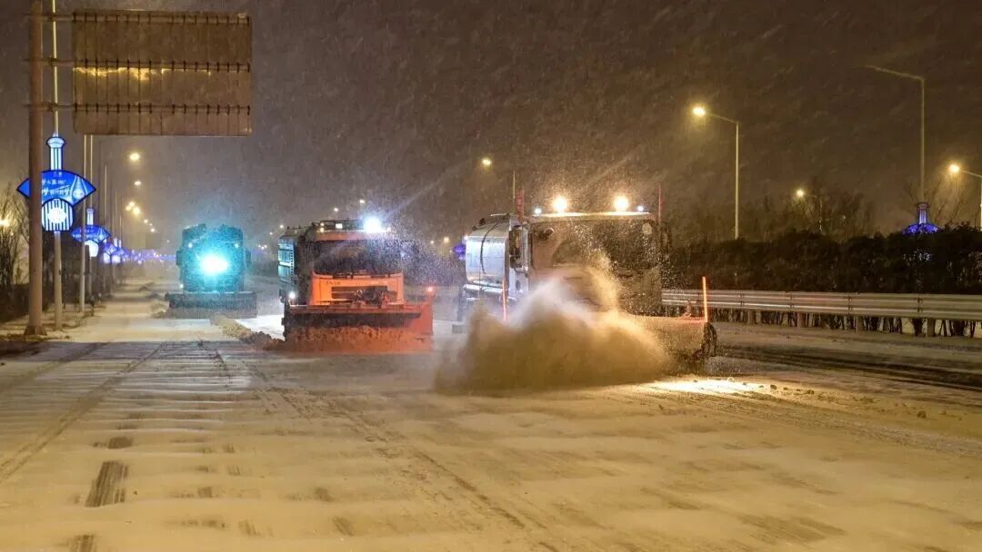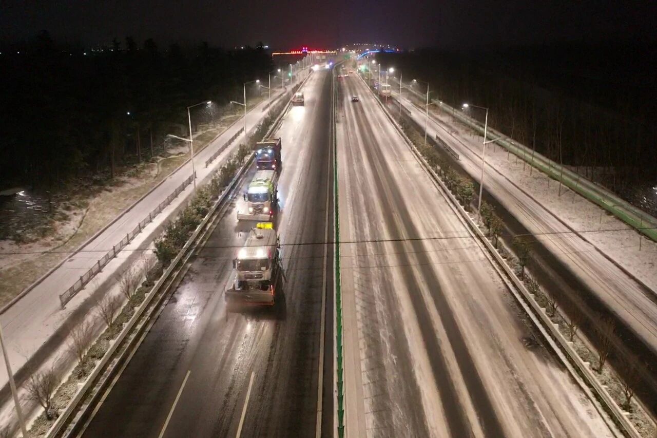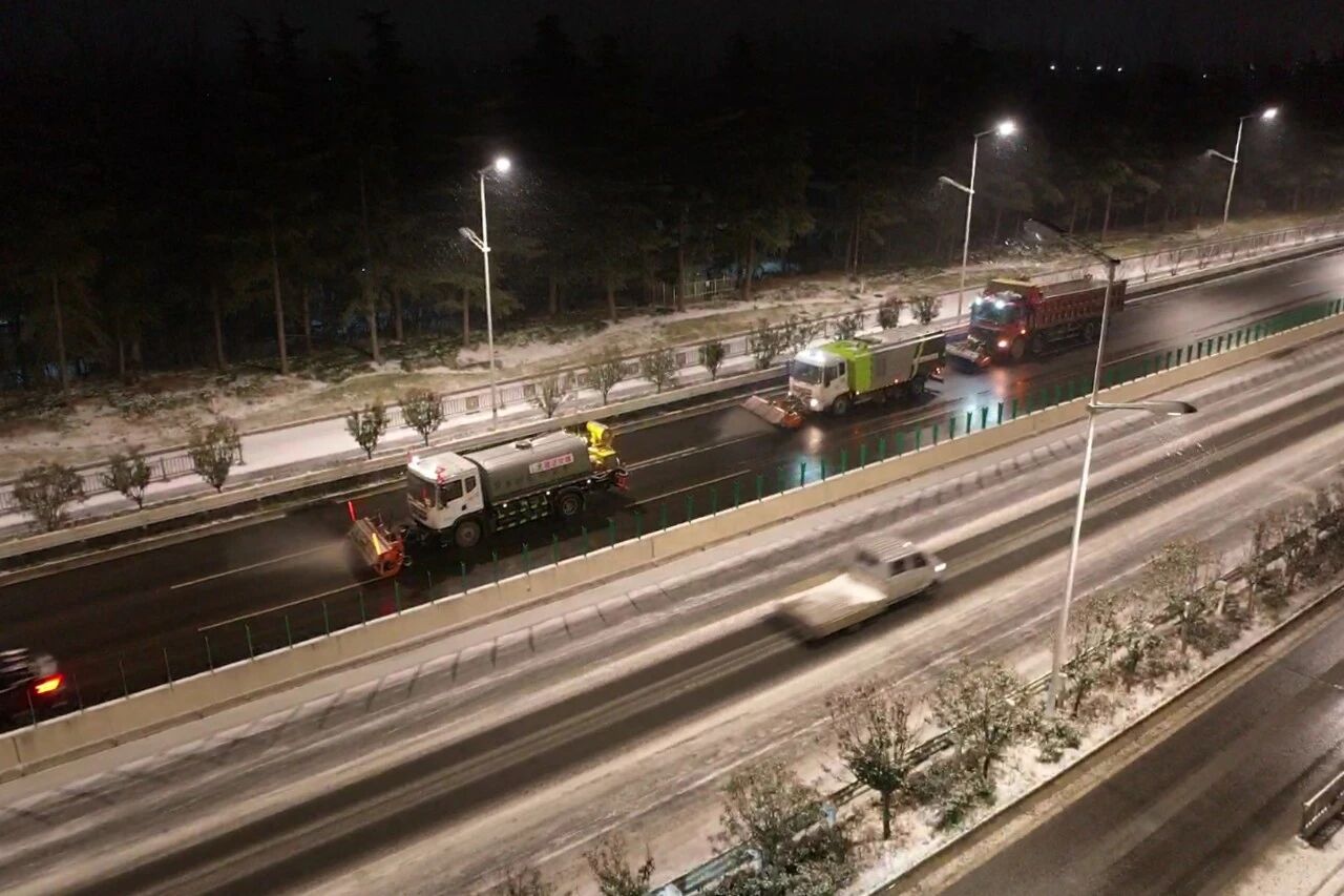 要寫無(wú)人的街,撒布融雪劑的車輛與身影