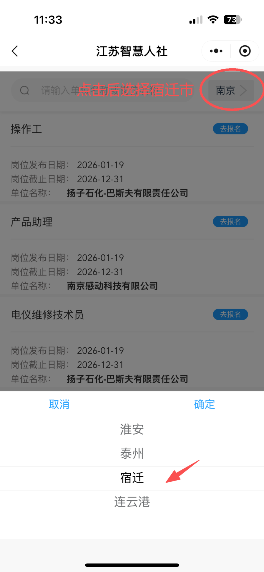 搜索微信小程序:江蘇智慧人社、按照下圖所示步驟操作報(bào)名