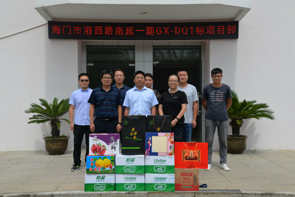 2019年9月11日,適逢中秋佳節(jié)前夕,公司黨總支組織工會(huì)等部門趕赴海門市,深切慰問(wèn)仍?shī)^斗在海門港西路大橋項(xiàng)目一線的公司員工,并給他們送去月餅、水果等節(jié)日禮品以及公司衷心的節(jié)日問(wèn)候。