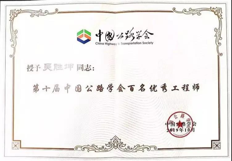 近日,第十屆中國公路學(xué)會百名優(yōu)秀工程師評選結(jié)果出爐,宿遷交建公司的吳勝坤榮獲中國公路第十屆百名優(yōu)秀工程師榮譽稱號。