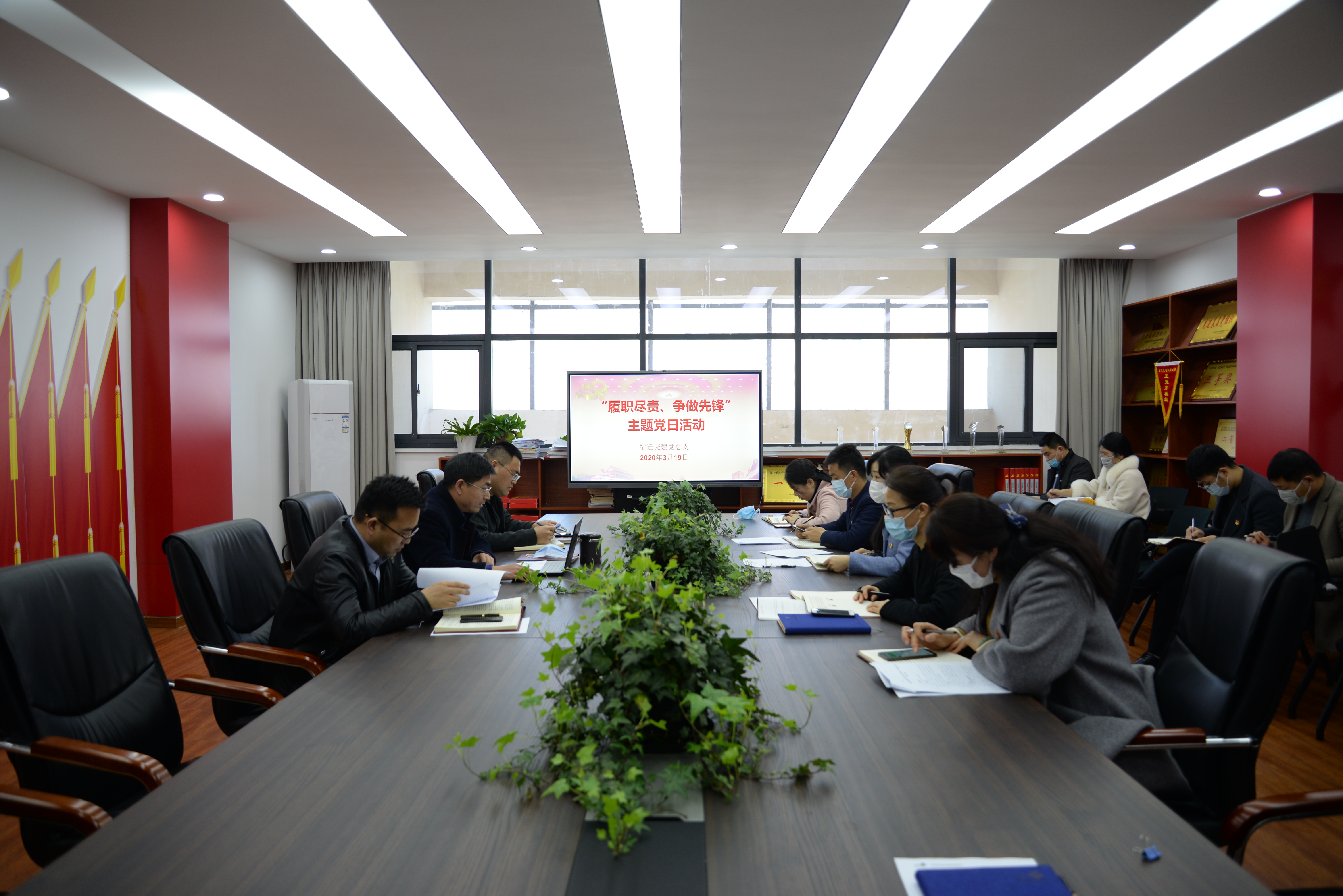 在疫情防控期間,為充分發(fā)揮廣大黨員同志的先鋒模范作用,3月19日下午,宿遷交建黨總支開展“履職盡責、爭做先鋒”主題黨日活動。此次活動通過“學習強國”視頻會議采取“線上+線下”的形式,設置一個主會場和兩個分會場,公司全體黨員、入黨積極分子參加會議,總支副書記周俊主持會議。