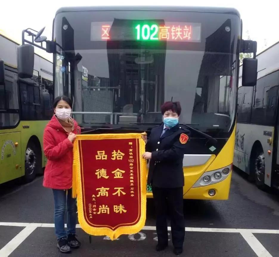 3月25日,市民閆女士帶著錦旗來到公交高鐵站點(diǎn),感謝駕駛員石桂華拾金不昧。