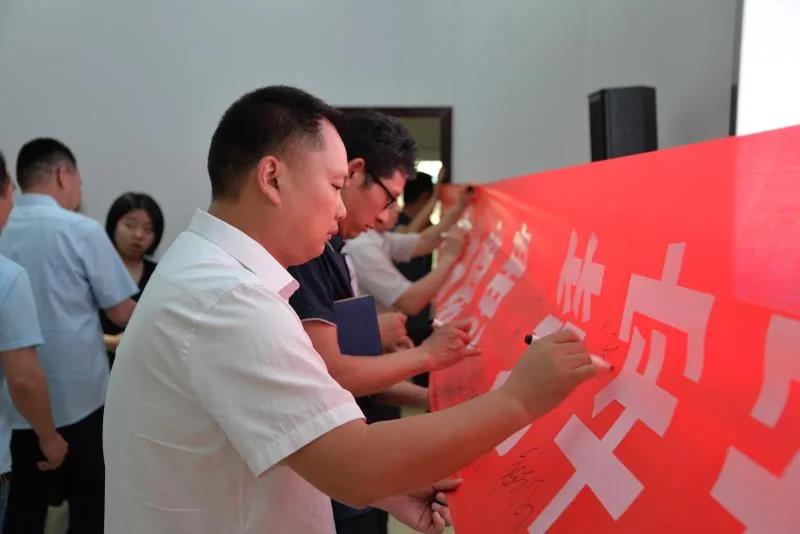 儀式上,全體人員共同觀看了施工現(xiàn)場安全隱患排查宣教片——《排患解危》,并在“消除事故隱患 筑牢安全防線”主題橫幅上簽字。