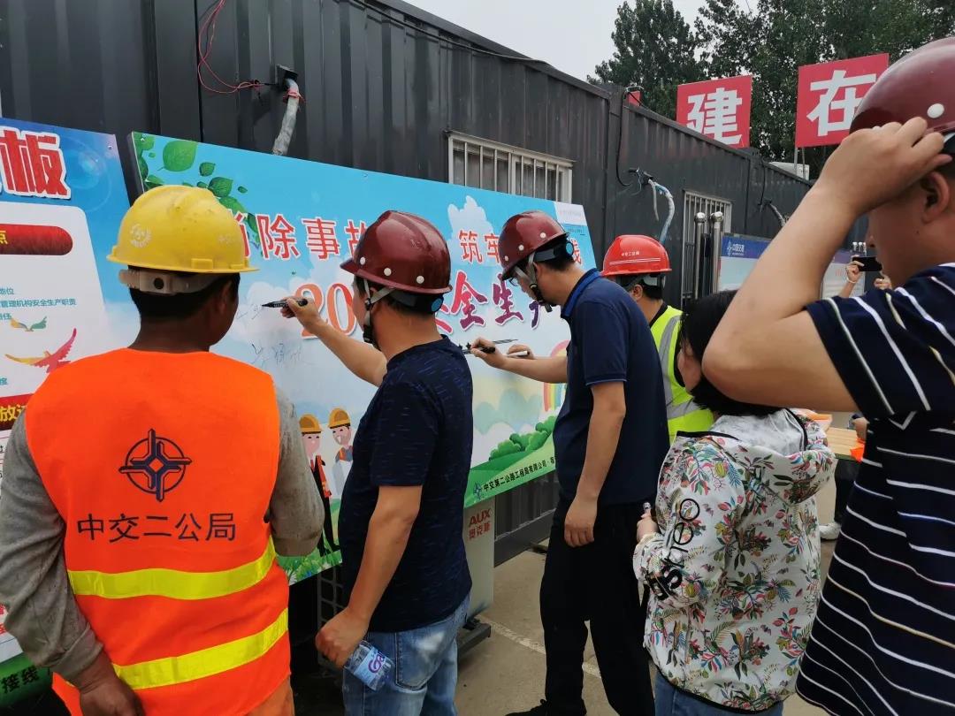 儀式上,項目安全總監(jiān)宣讀了2020年“安全生產(chǎn)月”活動方案,全體人員共同觀看了《消除事故隱患 筑牢安全防線》主題宣傳片,并在“消除事故隱患 筑牢安全防線”主題展板上簽字。
