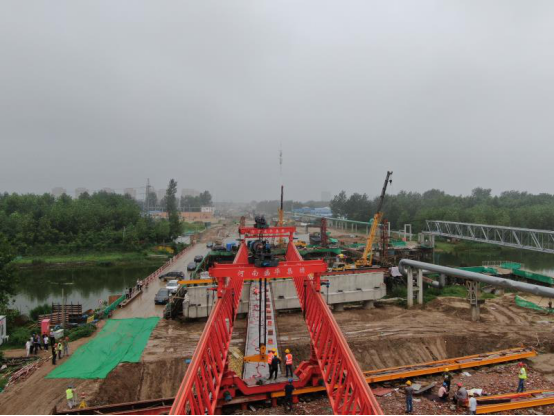 8月8日上午10時18分,在宿遷市上海路(高鐵站連接線)改造二期工程古黃河橋段施工現(xiàn)場,隨著架梁指揮員一聲令下,第一片預(yù)制梁順利落梁。截至8月9日下午,古黃河橋第五跨右幅10片預(yù)制梁全部架設(shè)完成,為上海路(高鐵站連接線)改造二期工程主線通車打下了堅實(shí)基礎(chǔ)。