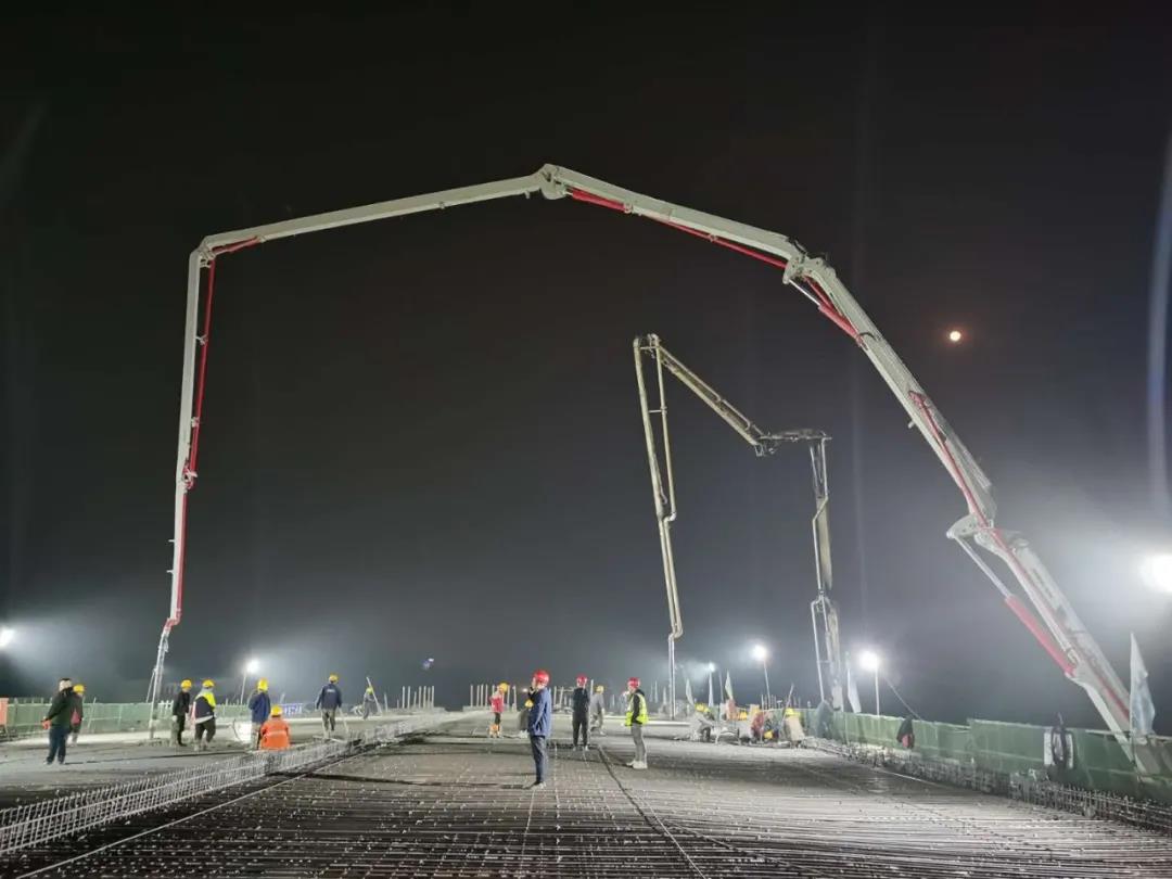 11月2日凌晨3點(diǎn)18分,上海路(高鐵站連接線)改造二期工程完成最后一次現(xiàn)澆梁澆筑施工。本次頂板澆筑計(jì)劃澆筑1150立方米,實(shí)際澆筑1149立方米,耗時(shí)13小時(shí)。