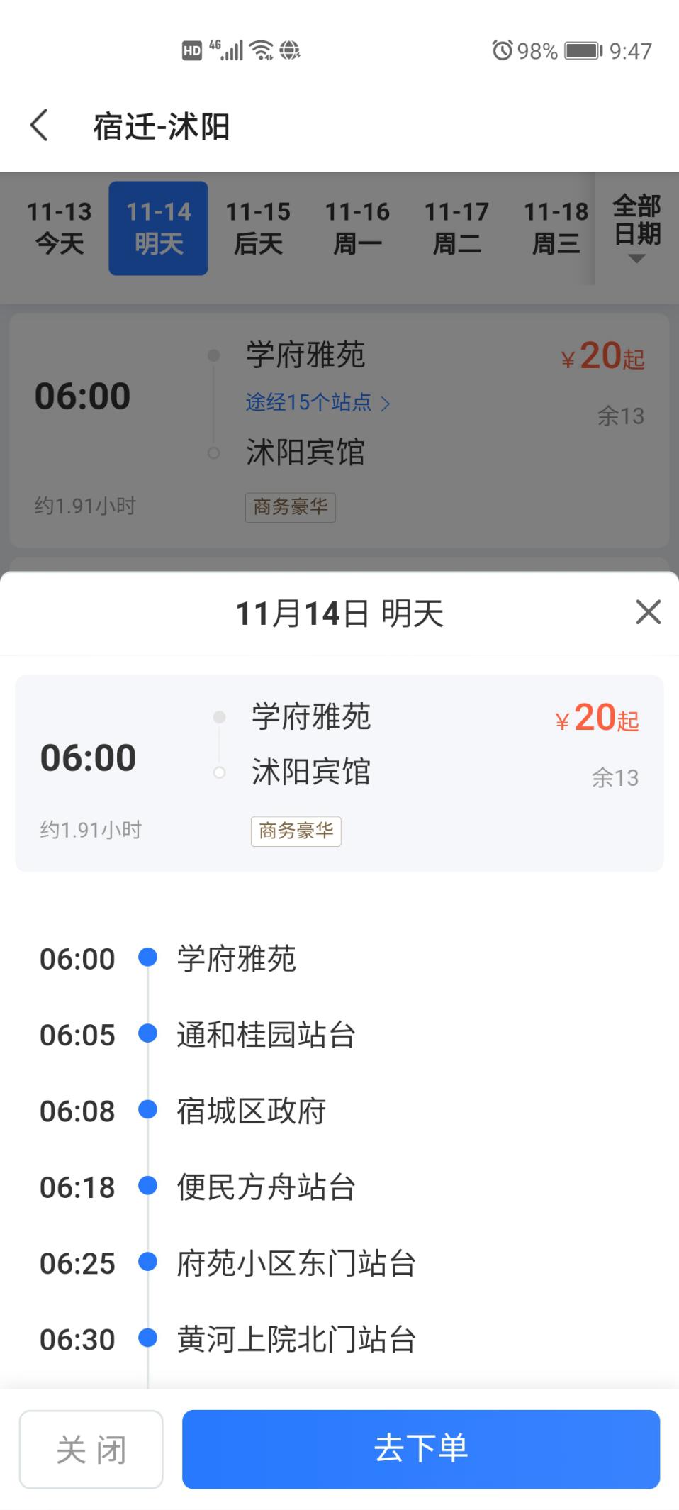 為更好地滿(mǎn)足廣大旅客乘車(chē)出行需求,11月13日起,宿遷汽車(chē)客運(yùn)站至沭陽(yáng)定制班車(chē)正式開(kāi)通。