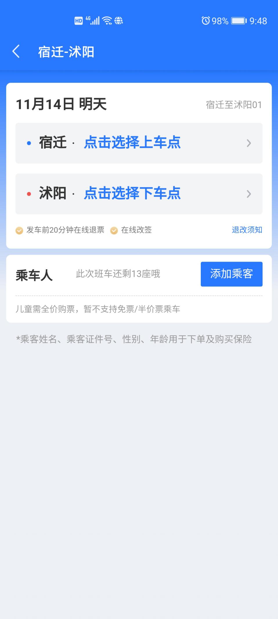 步驟四:選擇上車(chē)、下車(chē)站點(diǎn),填寫(xiě)乘車(chē)人信息;