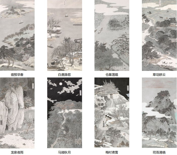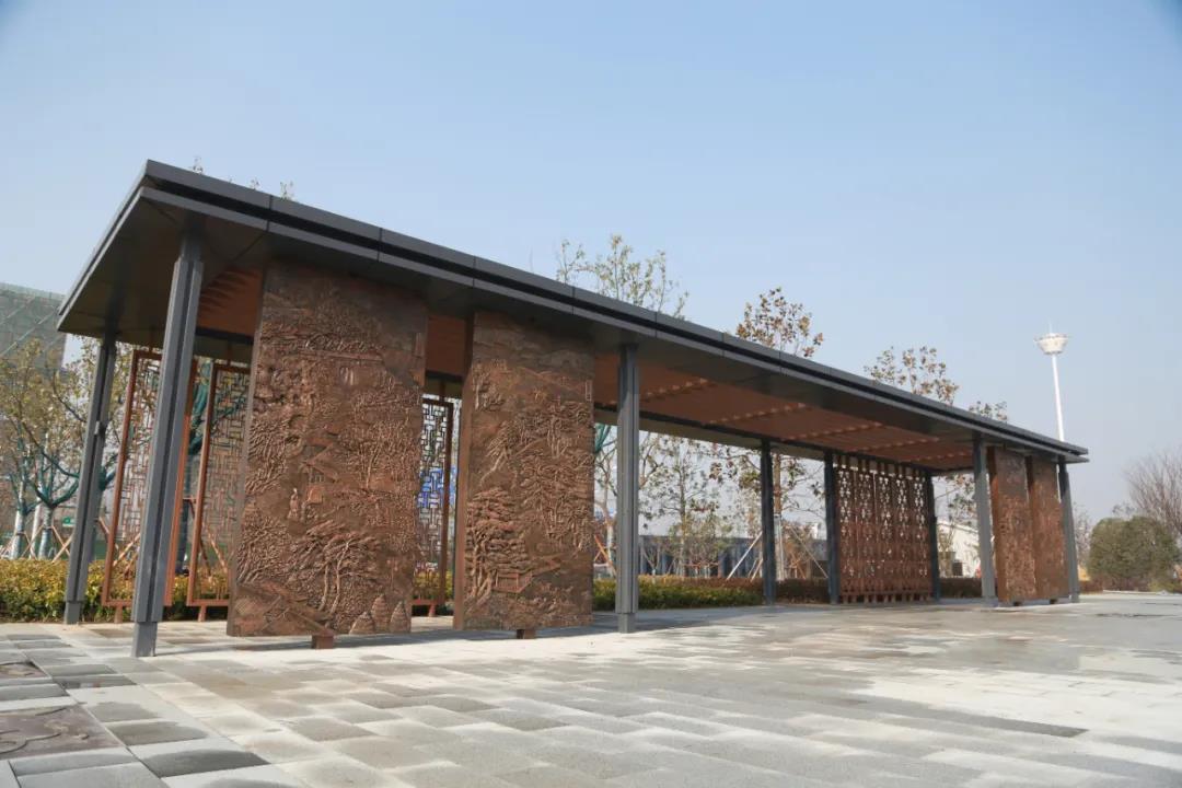 玖酒飄香浮雕的東西兩側(cè),分別設(shè)計(jì)了長29米、高3.9米的文化長廊,其上各鑲嵌了四幅宿遷歷史人文美景雕板,由國家一級(jí)美術(shù)師、宿遷市政協(xié)副主席、民盟市委主委丁立江先生牽頭,會(huì)同江蘇省作家協(xié)會(huì)理事、宿遷市作家協(xié)會(huì)主席韓玉喜,中國書法家協(xié)會(huì)會(huì)員、江蘇省書法家協(xié)會(huì)理事、宿遷市書法家協(xié)會(huì)主席張守躍,中國美術(shù)家協(xié)會(huì)會(huì)員郭鑫共同完成,每幅圖樣的創(chuàng)作都一一對應(yīng)前人留下的詩句。相傳“宿遷八景”出現(xiàn)于唐代,首載明萬歷《宿遷縣志》,以后續(xù)修,皆有記載。“宿遷八景”即為:“宿預(yù)早春、白鹿?jié)O歌、倉基蓮唱、草埝耕云、龍泉夜雨、馬陵秋月、梅村煮雪、司吾清曉”共八處風(fēng)光。“八景”各具特色,景象殊奇,歷代以來,項(xiàng)屬之地文人雅士相聚于“八景”之地,曲水流觴,迎風(fēng)弄月,留下了眾多文化典故。