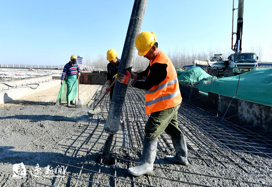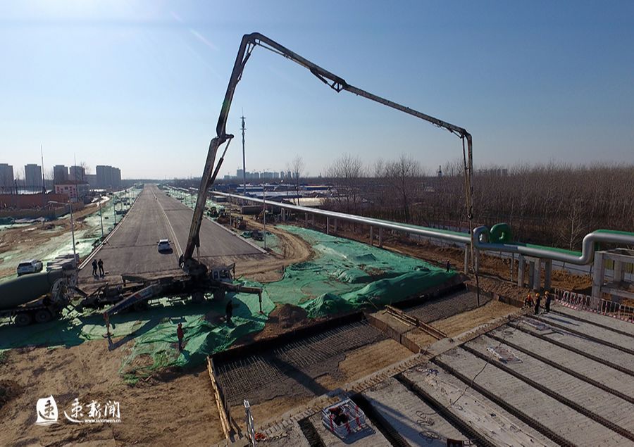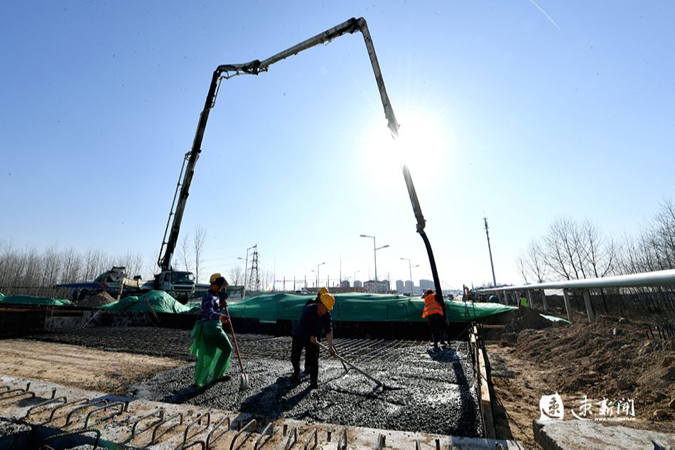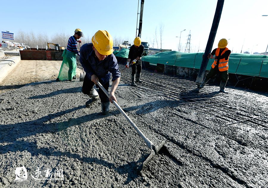 2月27日,工人正在上海路(高鐵站連接線)改造二期工程施工現(xiàn)場(chǎng)緊張施工。