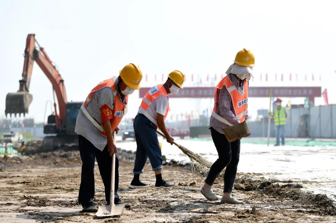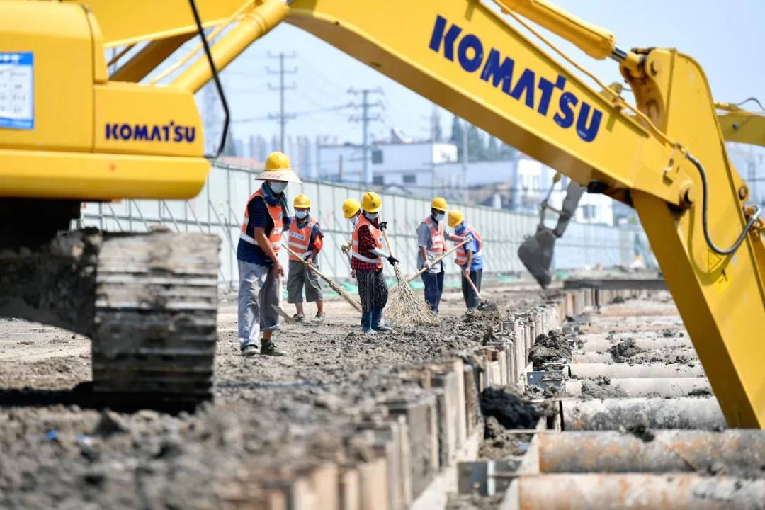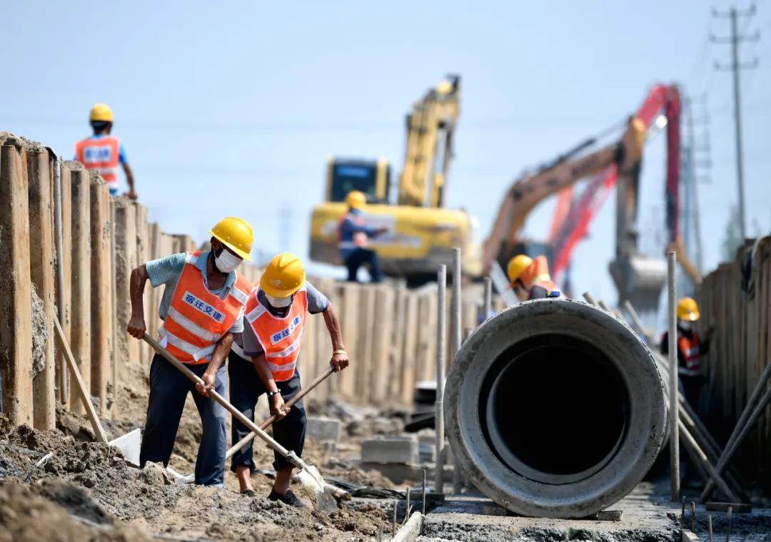 8月30日,徐淮路(通湖大道-淮徐高速公路宿遷西互通段)改造工程施工現(xiàn)場(chǎng),工人正緊鑼密鼓地進(jìn)行施工。