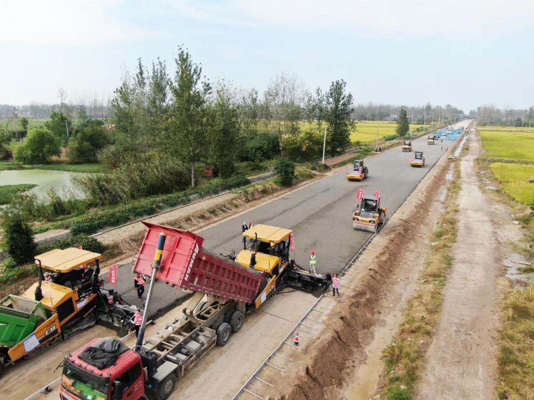 【宿遷交建】宿遷交建268省道宿遷段工程(洋河新區(qū)段)項(xiàng)目水穩(wěn)首件試驗(yàn)段攤鋪完成