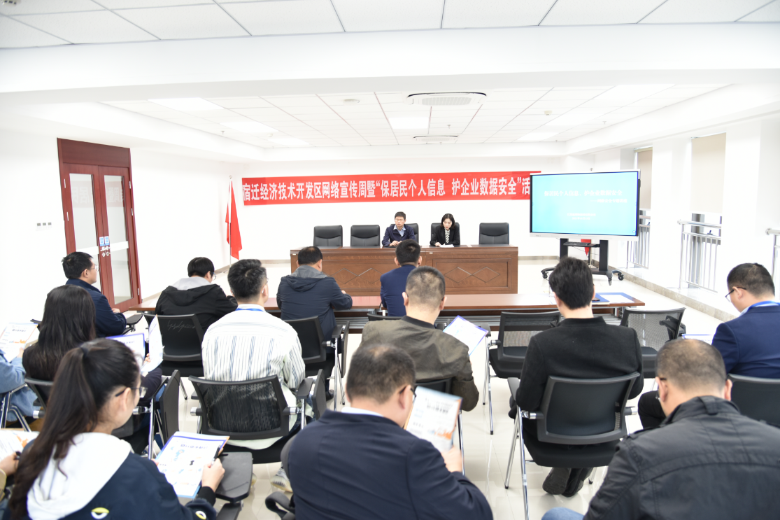 在宣傳周活動(dòng)中,在園區(qū)LED大屏等載體上投放網(wǎng)絡(luò)安全宣傳圖,提升園區(qū)職工及租戶的網(wǎng)絡(luò)安全防護(hù)意識(shí);參加宿遷經(jīng)濟(jì)技術(shù)開(kāi)發(fā)區(qū)舉辦的“《小學(xué)生安全漫畫——網(wǎng)絡(luò)安全》讀本捐贈(zèng)儀式”,為該區(qū)小學(xué)生送上了生動(dòng)的網(wǎng)絡(luò)安全讀物;邀請(qǐng)宿遷經(jīng)濟(jì)技術(shù)開(kāi)發(fā)區(qū)組織宣傳部領(lǐng)導(dǎo)為園區(qū)職工及租戶代表上了“保居民個(gè)人信息,護(hù)企業(yè)數(shù)據(jù)安全” 網(wǎng)絡(luò)安全專題講座,對(duì)數(shù)據(jù)安全問(wèn)題案例、企業(yè)數(shù)據(jù)安全管理現(xiàn)狀、企業(yè)數(shù)據(jù)泄露途徑、企業(yè)數(shù)據(jù)泄露防范措施等方面進(jìn)行了專題講解,并為當(dāng)前園區(qū)網(wǎng)絡(luò)貨運(yùn)業(yè)務(wù)開(kāi)展及信息化、智慧化園區(qū)建設(shè)提供了新知識(shí)、新想法、新思路。