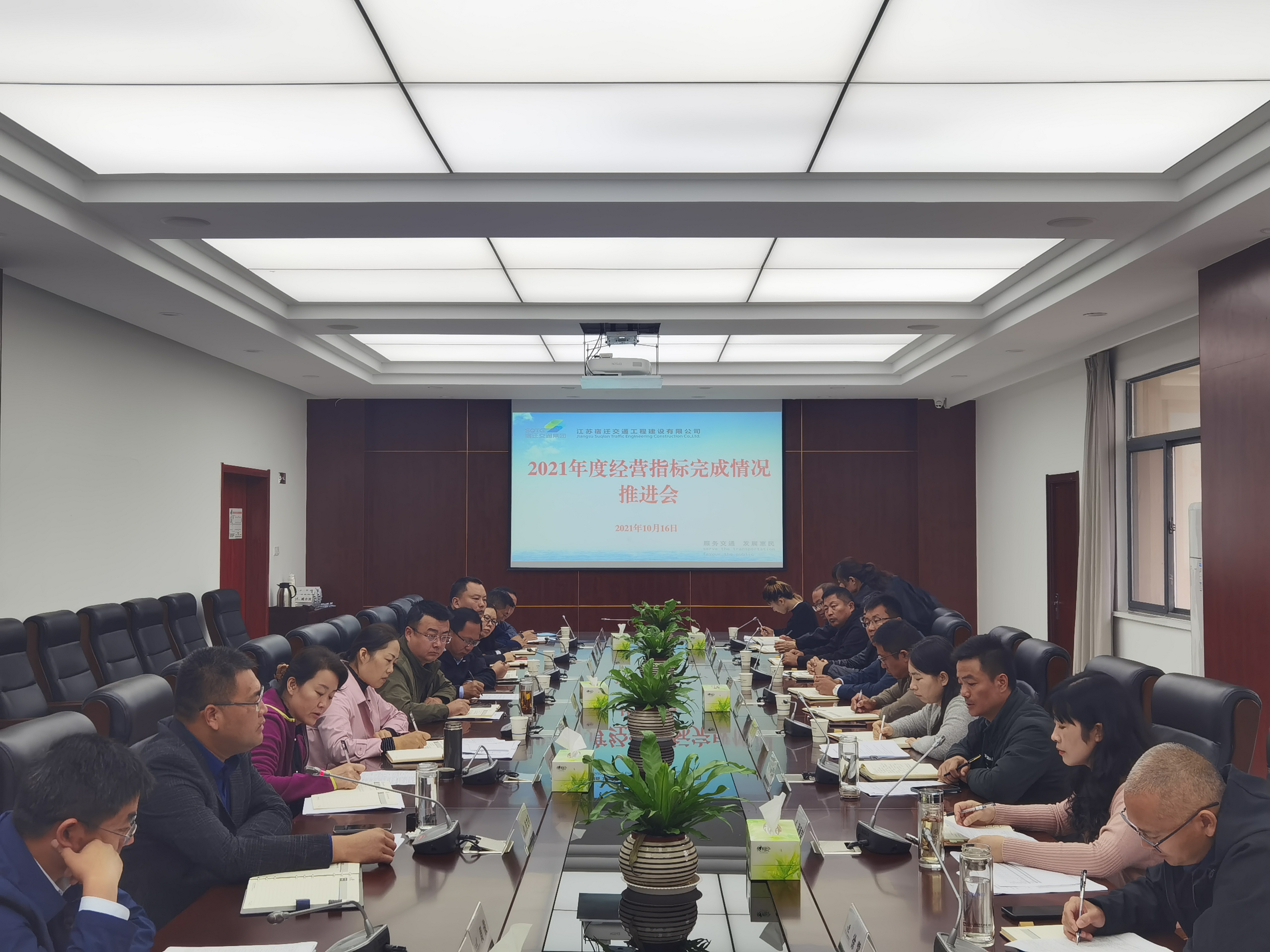 10月16日, 宿遷交建召開(kāi)2021年度經(jīng)營(yíng)目標(biāo)推進(jìn)會(huì),對(duì)照全年目標(biāo)任務(wù),全面檢查指標(biāo)完成情況,查漏補(bǔ)缺,動(dòng)員全體,全力沖刺年度目標(biāo)任務(wù)。