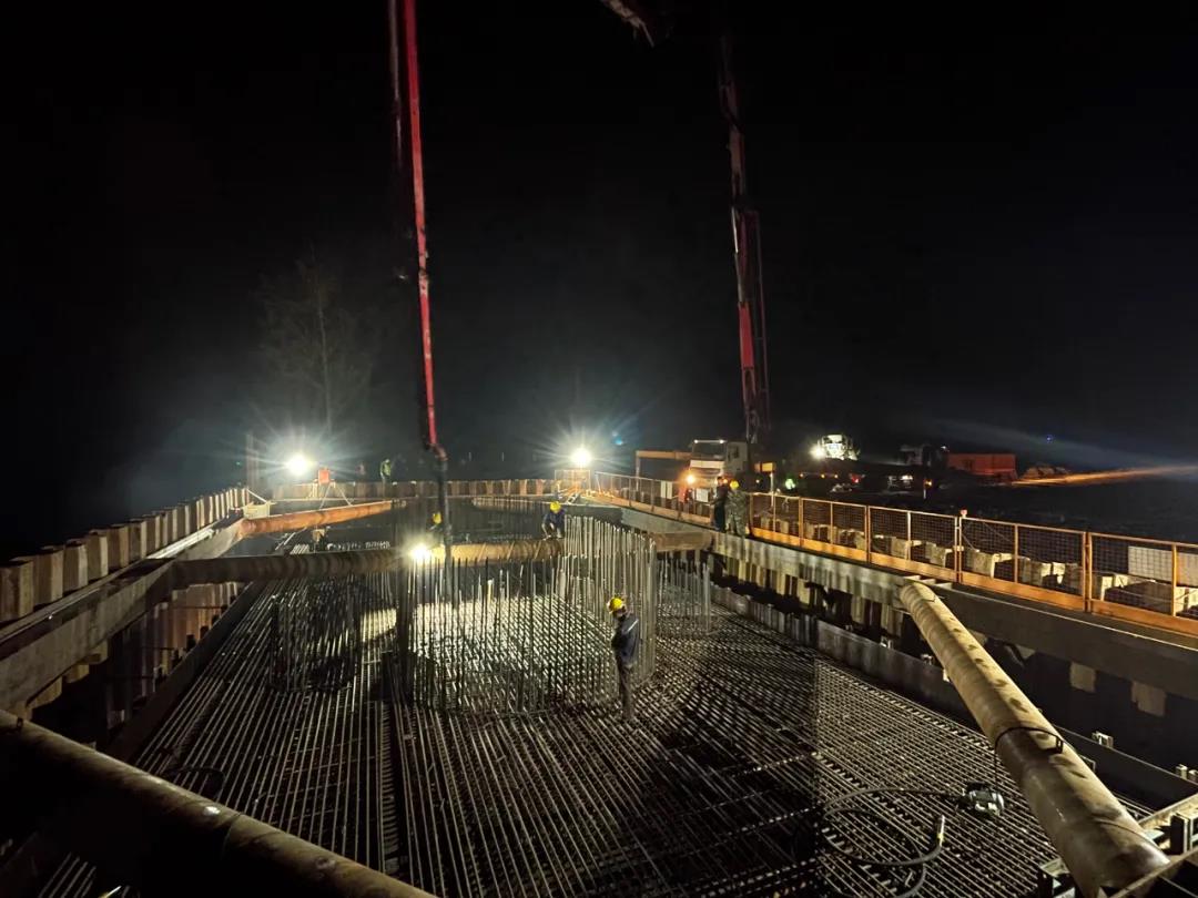11月4日晚8時(shí),經(jīng)過(guò)20余個(gè)小時(shí)的連續(xù)奮戰(zhàn),宿遷交建268省道宿遷段工程(洋河新區(qū)段)YHD-2020-SG標(biāo)段京杭運(yùn)河特大橋首個(gè)大體積承臺(tái)順利澆筑完成。