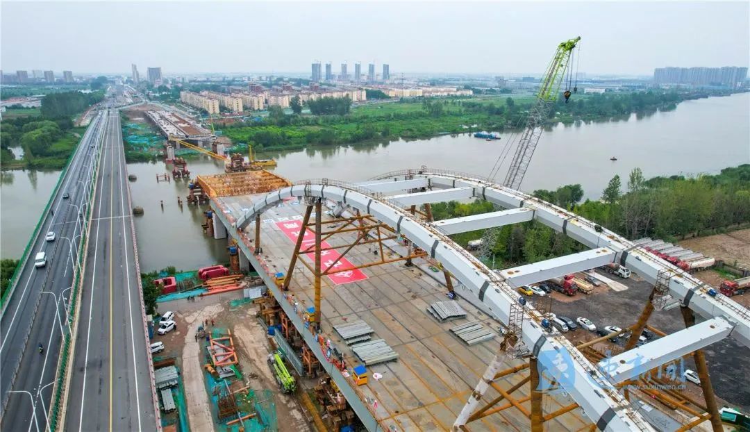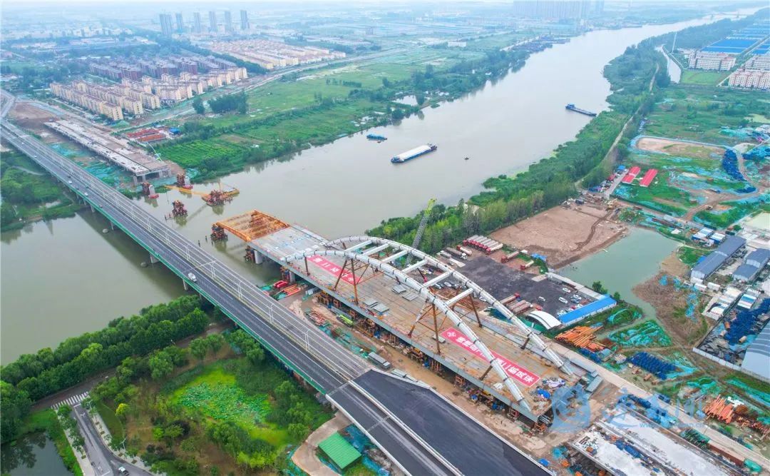 7月29日,宿遷市北京路快速化改造工程跨京杭運(yùn)河特大橋開(kāi)始第二輪頂推施工。