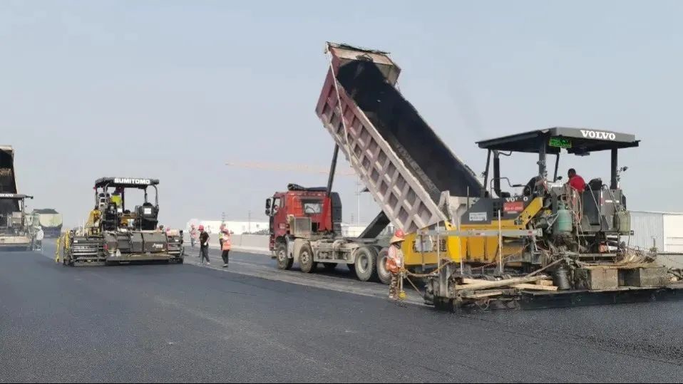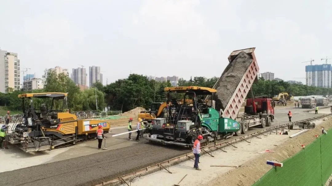 在北京路快速化改造工程2標(biāo)段施工現(xiàn)場(chǎng),建設(shè)者們頂著太陽(yáng),腳踩著瀝青路面,身后是翻滾著瀝青料的攤鋪機(jī),他們汗流浹背,在烈日下仍然以飽滿的熱情和良好的工作狀態(tài)投入到瀝青攤鋪工作中。