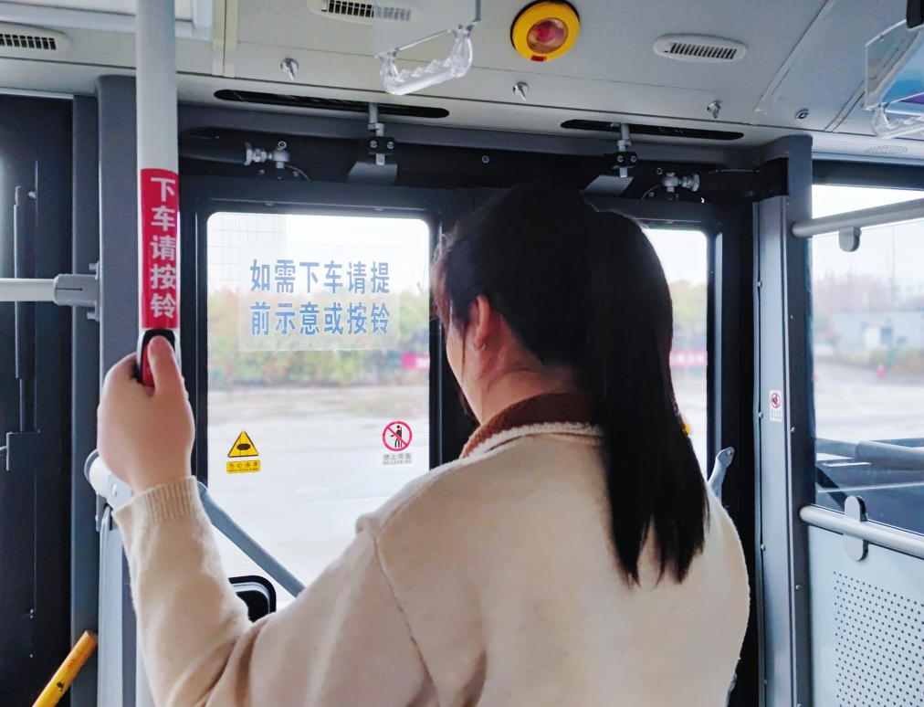 據(jù)公交公司營運(yùn)部經(jīng)理朱翊介紹,這是公司2023年度“為民辦實事”項目之一——全面優(yōu)化“響應(yīng)式”??抗环?wù)。所謂“響應(yīng)式”??浚褪擒囕v到站前,需要下車的乘客提前按響下車鈴,駕駛員根據(jù)響鈴提示靠站停車,避免了乘客因示意不明顯或未做示意而錯過下車的不便與尷尬。目前,公交公司已為86條線路、1300余輛公交車增設(shè)提示標(biāo)語,更新按鈴裝置。