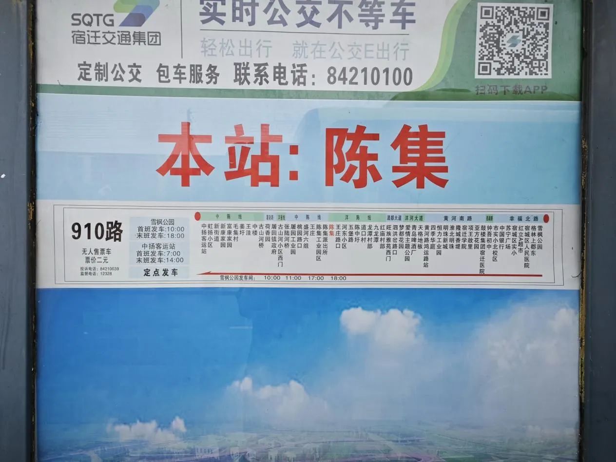 為進(jìn)一步優(yōu)化市區(qū)公交線網(wǎng)結(jié)構(gòu),切實(shí)解決城鄉(xiāng)居民出行需求,自今年8月28日起,宿城區(qū)陳集鎮(zhèn)、屠園鄉(xiāng)、中揚(yáng)鎮(zhèn)這三個(gè)鄉(xiāng)鎮(zhèn)開(kāi)通了直達(dá)市區(qū)定時(shí)公交910路(雪楓公園公交樞紐站至中揚(yáng)客運(yùn)站),沿線站點(diǎn)均可2元公交直達(dá)。