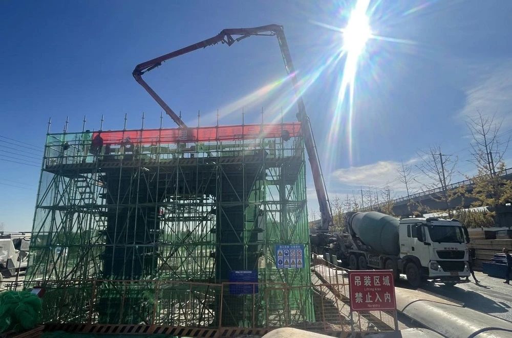 11月18日,經(jīng)過3小時(shí)的連續(xù)作業(yè),港城路上跨鐵路專用線橋梁工程最后一個(gè)墩柱順利完成澆筑,標(biāo)志著該項(xiàng)目全面進(jìn)入橋梁上部結(jié)構(gòu)施工階段。
