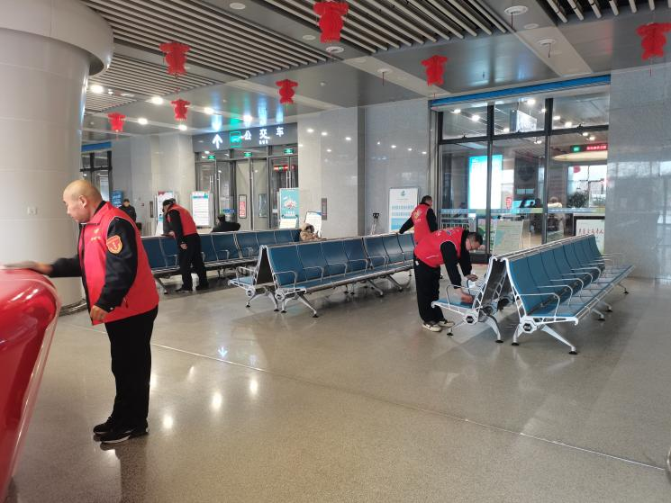 與此同時(shí),在高鐵公交樞紐站,身穿紅色馬甲的志愿者們分工明確、不停忙碌,有的負(fù)責(zé)維護(hù)現(xiàn)場(chǎng)秩序,有的則熱心導(dǎo)乘、幫扶老弱。待人潮散去后,他們又一起將候車區(qū)座椅擦拭干凈。他們的用心服務(wù)得到了來(lái)往乘客的一致稱贊,在志愿服務(wù)站穿梭的“志愿紅”成為一道亮麗的風(fēng)景線。