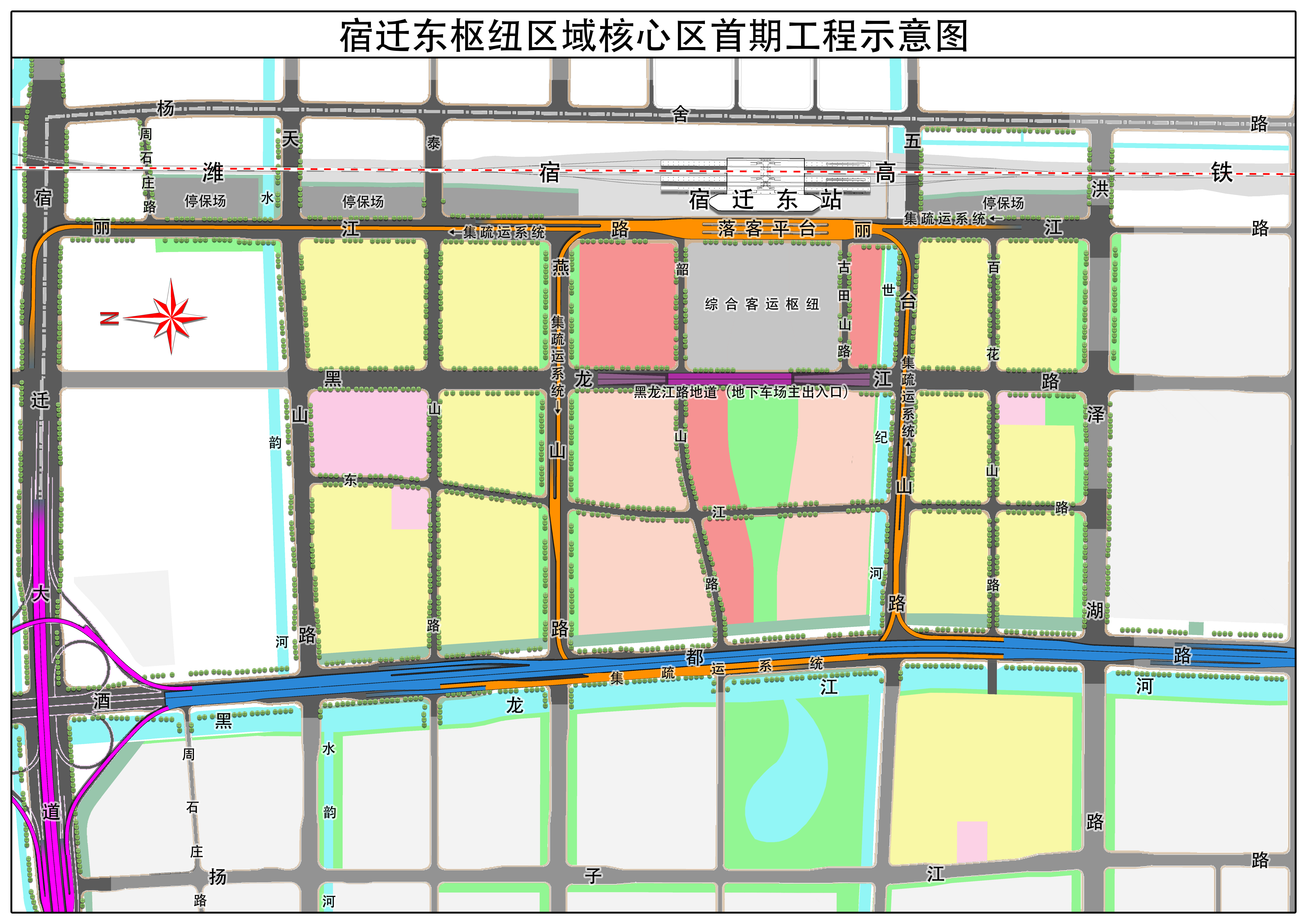 宿遷東樞紐區(qū)域核心區(qū)首期工程項(xiàng)目涵蓋五臺山路、麗江路、燕山路高鐵集輸運(yùn)進(jìn)出站高架工程、核心區(qū)過鐵通道、市政路網(wǎng)、停保場等工程。首期工程項(xiàng)目的實(shí)施,將有助于構(gòu)建高鐵宿遷東站集疏運(yùn)體系,完善核心區(qū)市政路網(wǎng)、管網(wǎng)、水利等設(shè)施,為核心區(qū)開發(fā)建設(shè)提供必要的基礎(chǔ)設(shè)施條件。