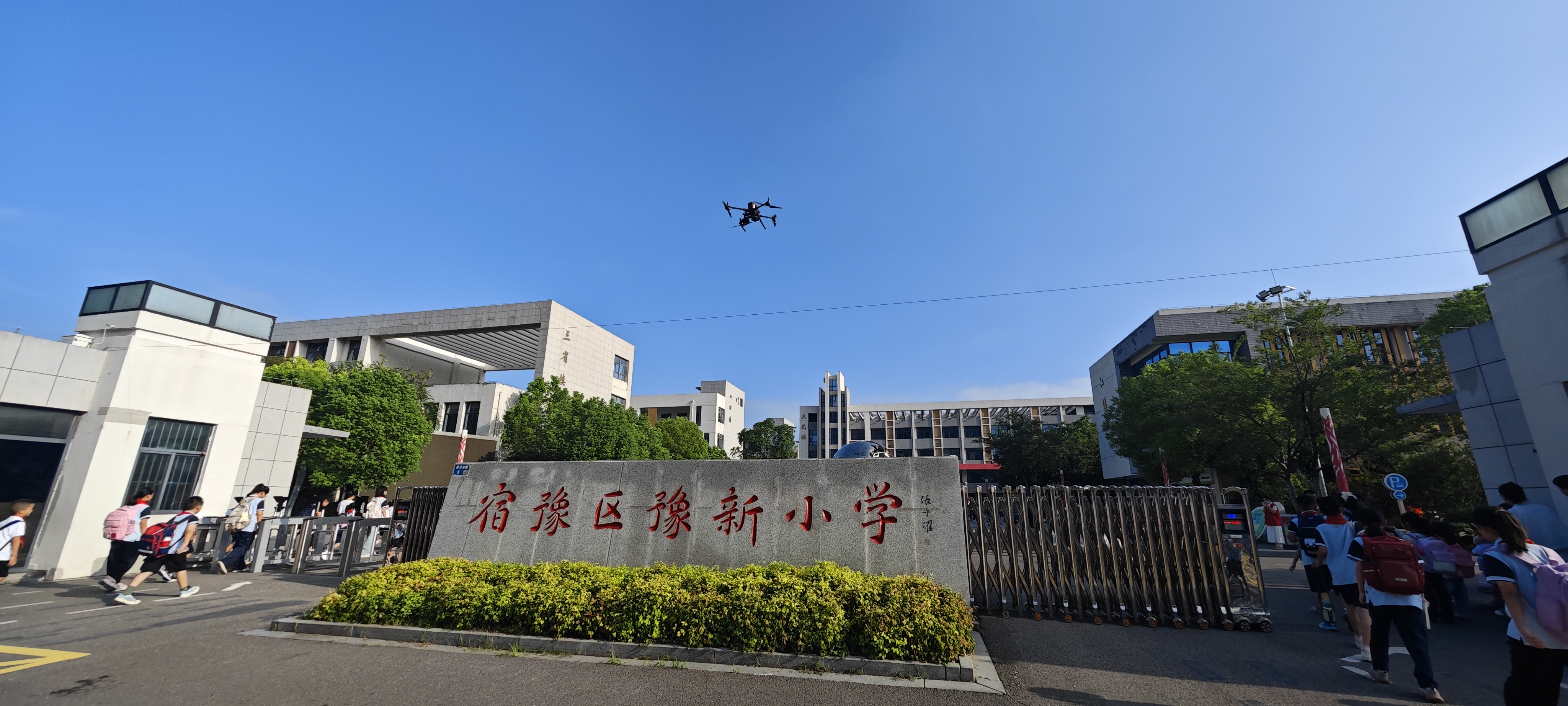 當(dāng)日清晨7點(diǎn),在宿遷市實(shí)驗(yàn)小學(xué)(幸福路校區(qū))、南京師范大學(xué)附屬中學(xué)宿遷分校和宿豫區(qū)豫新小學(xué)門口,低空科技公司工作人員操控?zé)o人機(jī)準(zhǔn)時升空。這些無人機(jī)配備了高清攝像頭與喊話設(shè)備,能夠?qū)崟r監(jiān)控學(xué)校周邊的交通狀況,并通過喊話功能引導(dǎo)車輛有序通行。據(jù)了解,無人機(jī)升空后,可覆蓋半徑500米的區(qū)域,將實(shí)時畫面同步,為地面執(zhí)法人員提供精準(zhǔn)的交通信息。