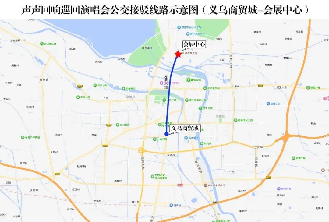 具體線路:江山大道——項(xiàng)王路——黃河路——三臺(tái)山大道——奧體路——會(huì)展中心(奧萊廣場(chǎng))