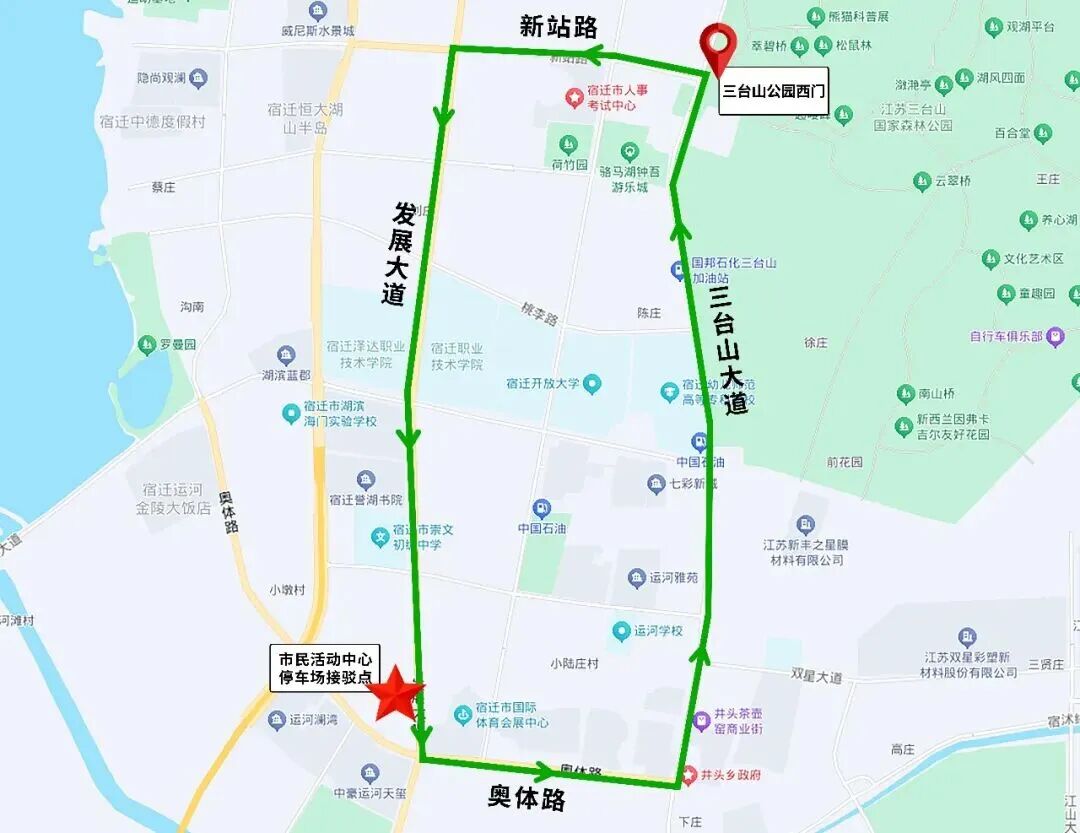 行駛線路:發(fā)展大道—新站路—三臺山大道—奧體路—發(fā)展大道。