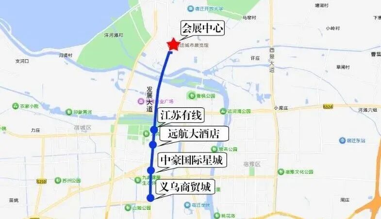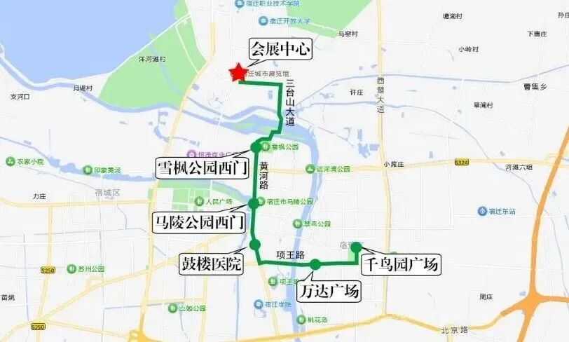 沿線接駁點(diǎn):澤達(dá)學(xué)院公交站點(diǎn)、職業(yè)技術(shù)學(xué)院公交站點(diǎn)、宿遷衛(wèi)校公交站點(diǎn)、開(kāi)放大學(xué)公交站點(diǎn)、國(guó)防園公交站點(diǎn)。